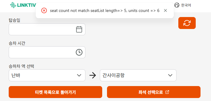 ⑥ 에러메세지:「seat count not match seat List length」