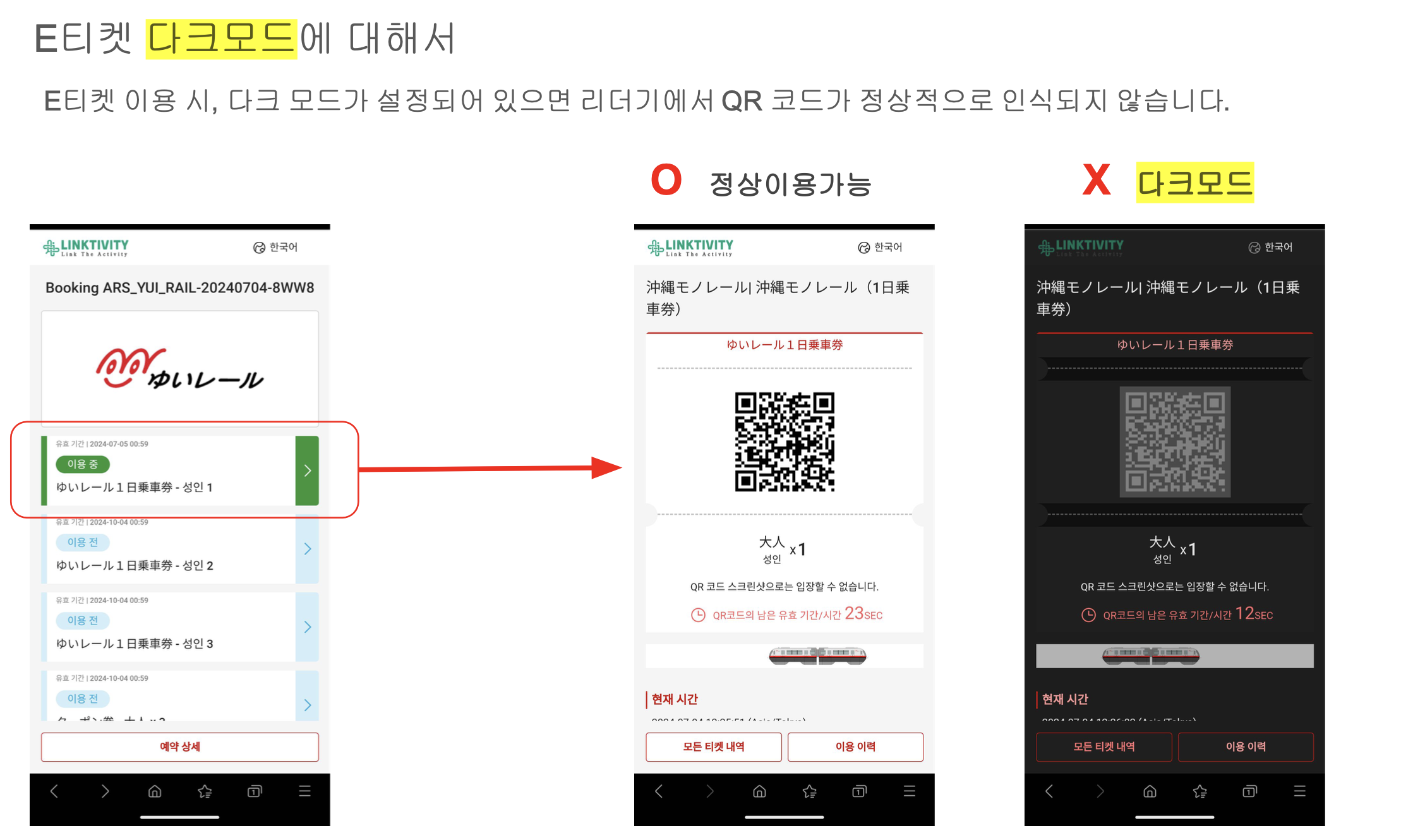 ④에러메세지:「払い戻しされた特急券・座席指定券はお取り扱いできません。」 「환불된 특급권/좌석 지정권은 처리할 수 없습니다.」