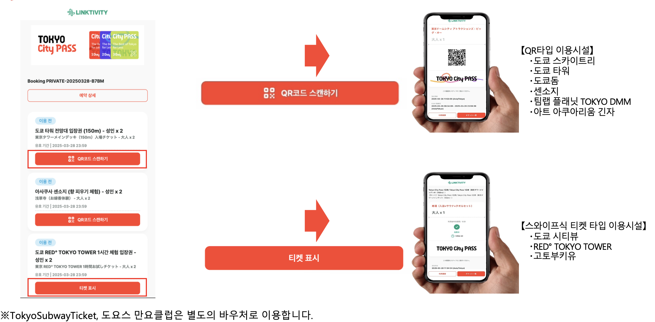※5 페이지 링크 접속 시 나오는 티켓 타입별 이용가능 시설 및 이용방법
